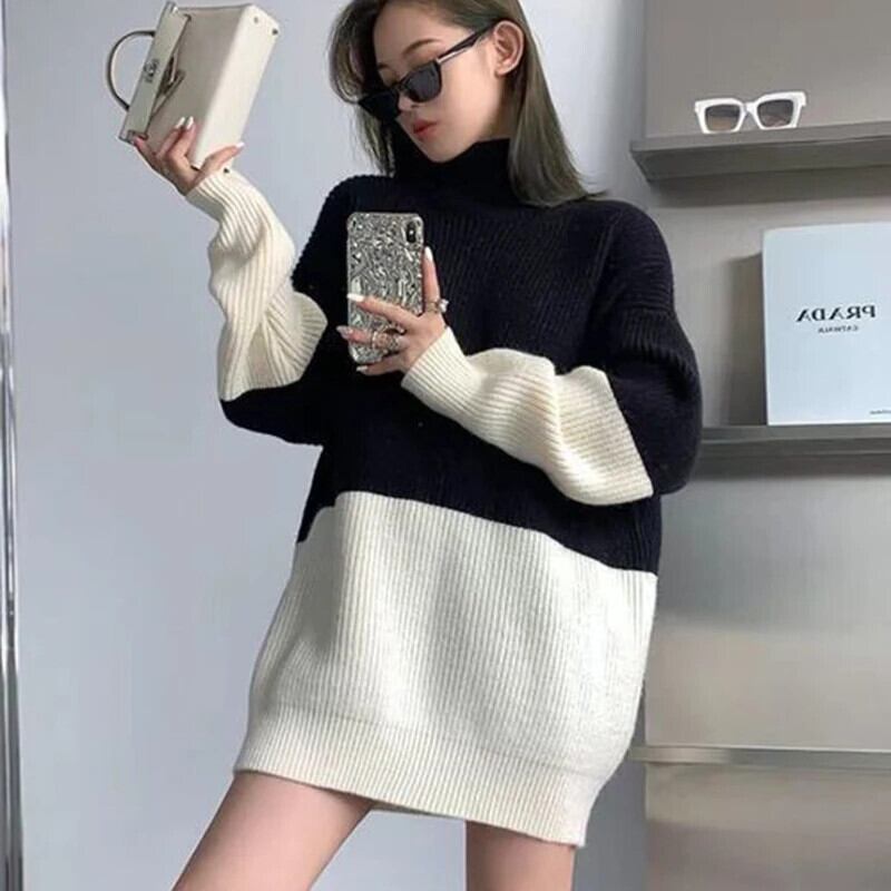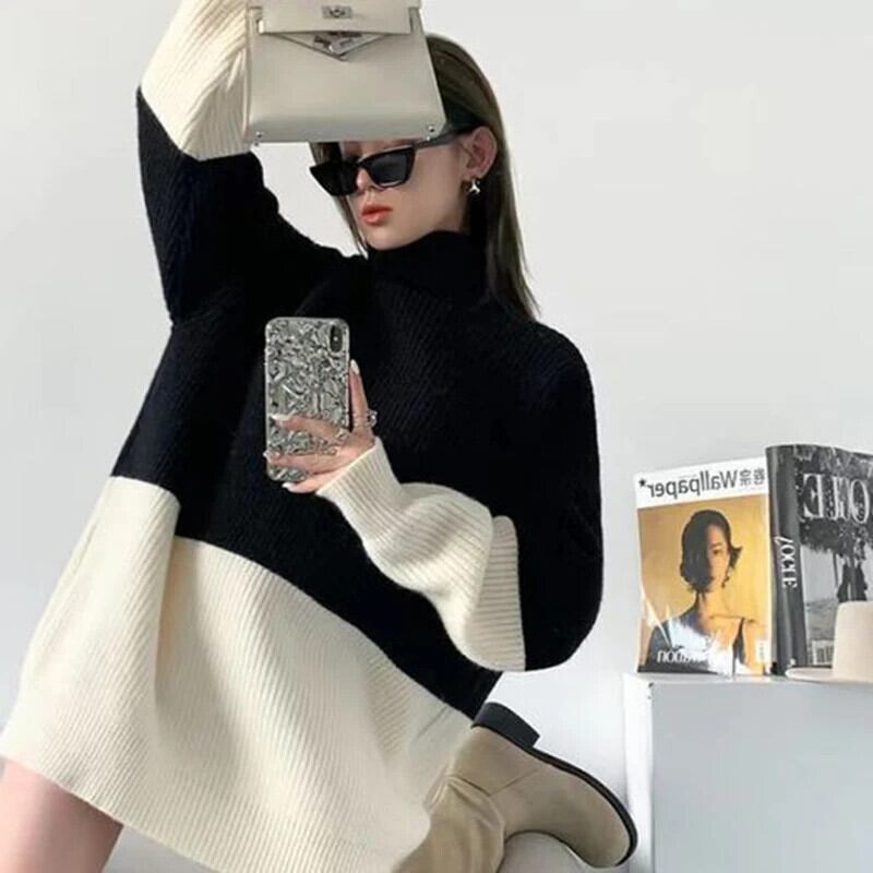 送料無料 Gidyq 秋の女性暖かいセーターパッチワークルーズ長袖ニットトップスすべて一致プルオーバージャンパー ロング オータム 秋物 AE008077655057764151
