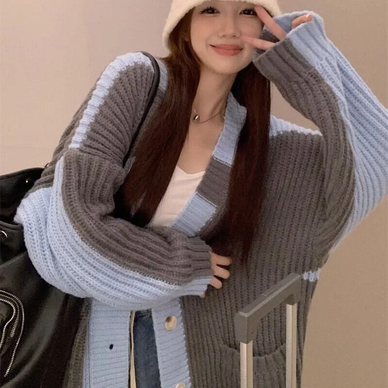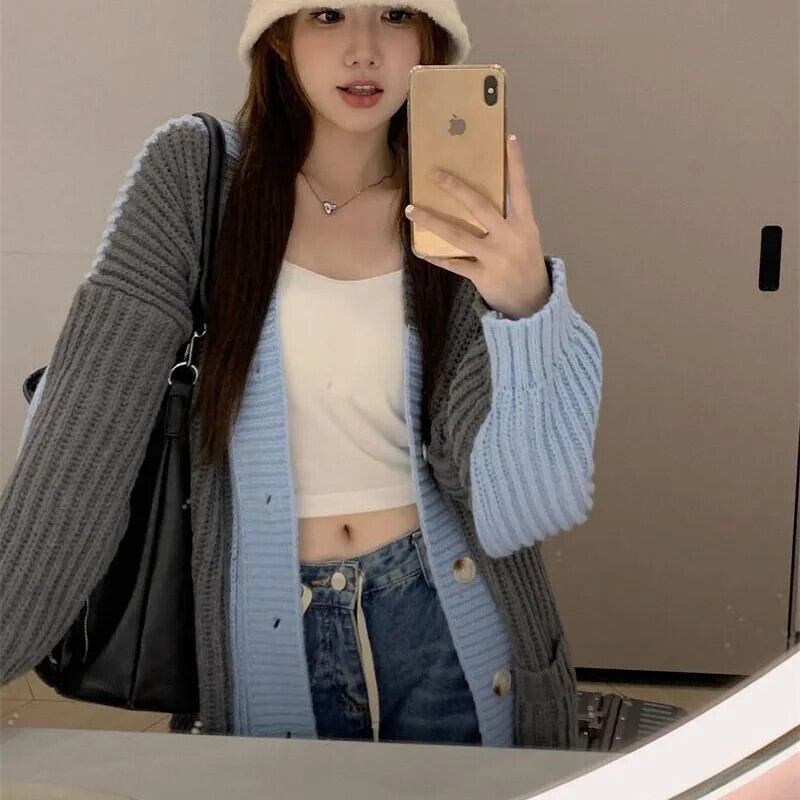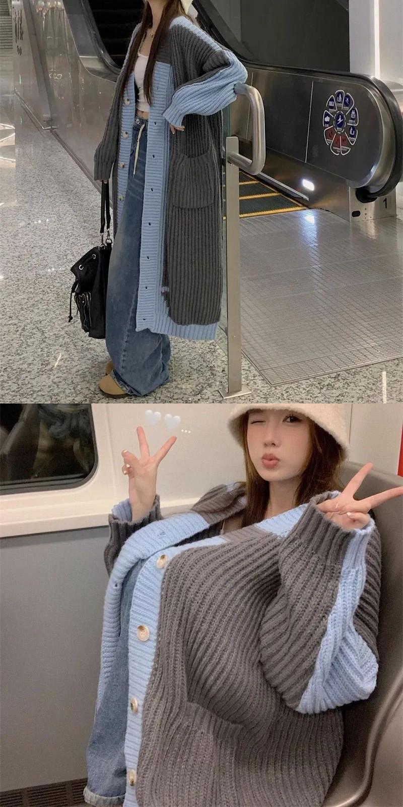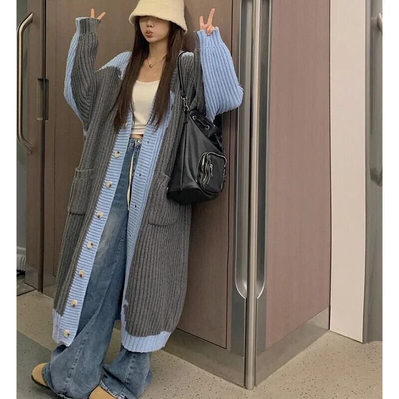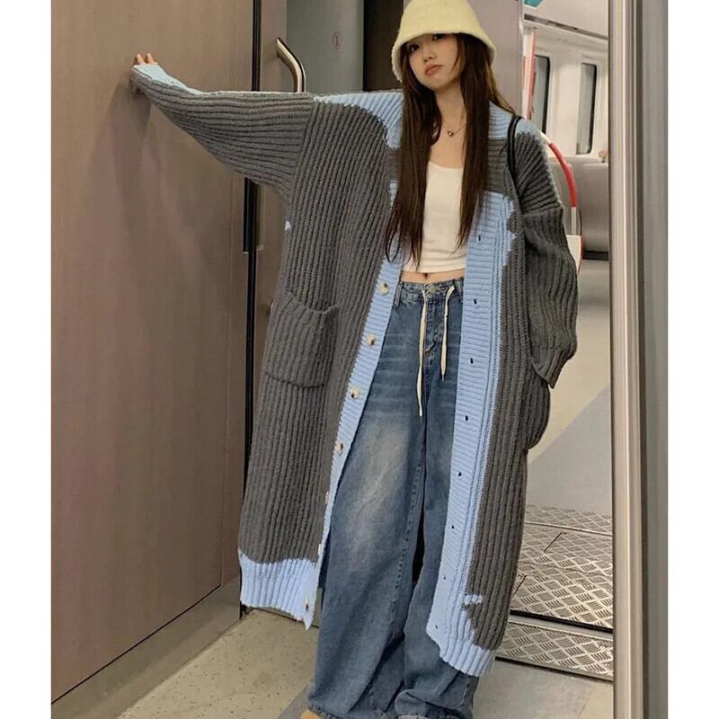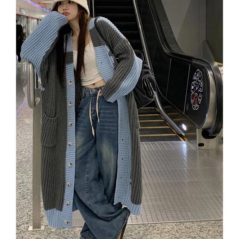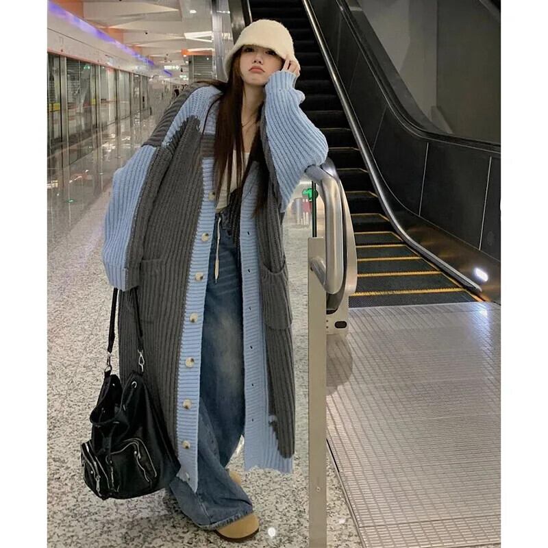 送料無料 Gidyq 女性カーディガンロングセーターストリートルーズニットコート秋すべて一致ボタンオーバーコート オータム 秋物 AE008077630925588549