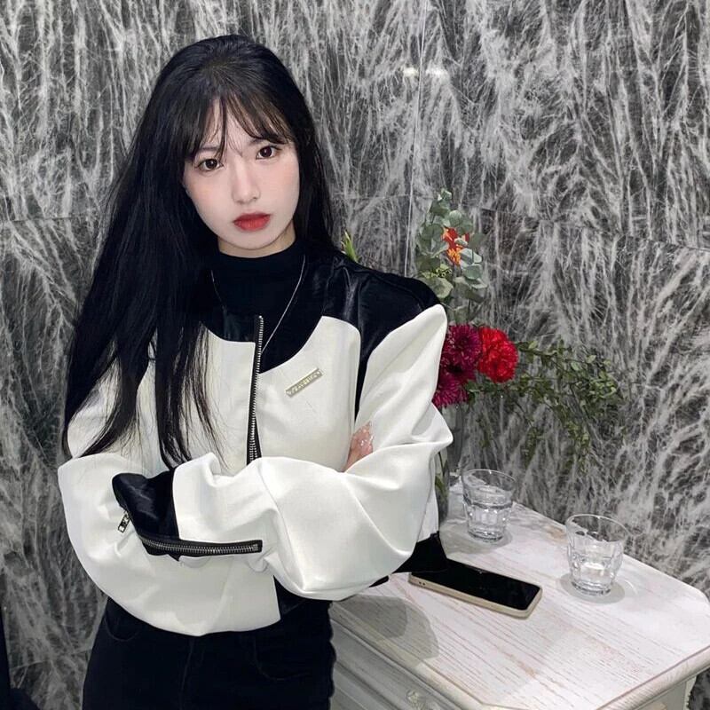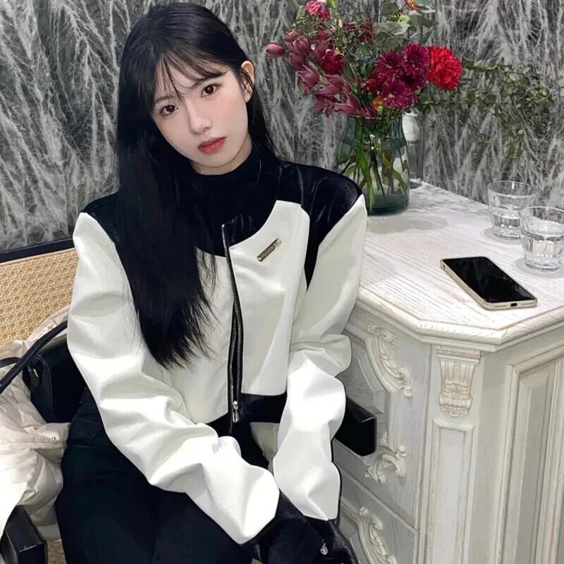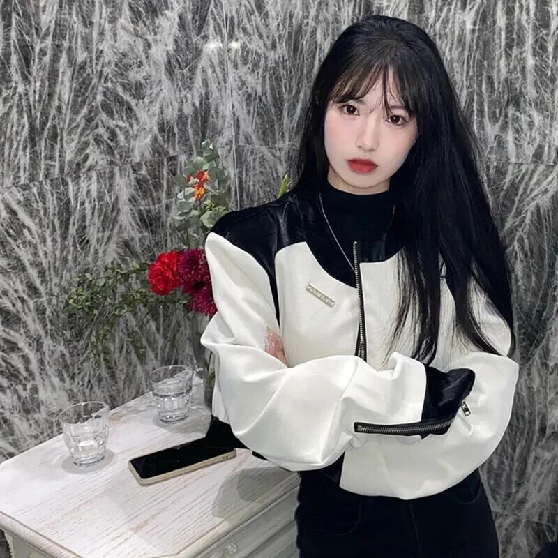 送料無料 Gidyq ストリート女性レザージャケット秋パッチワークルーズコートすべて一致クロップドアウター オータム 秋物 AE00807763016377164