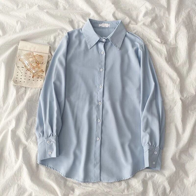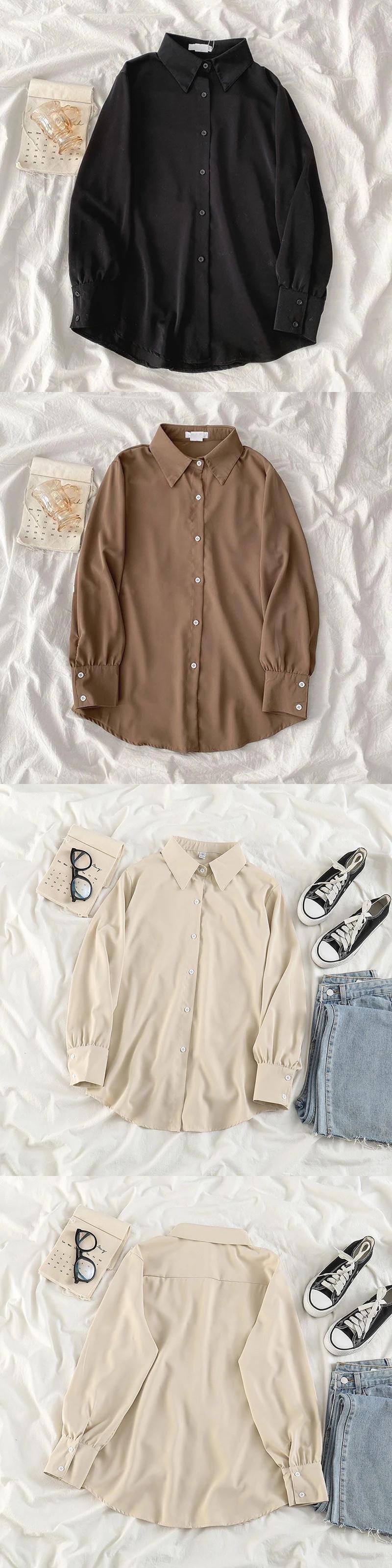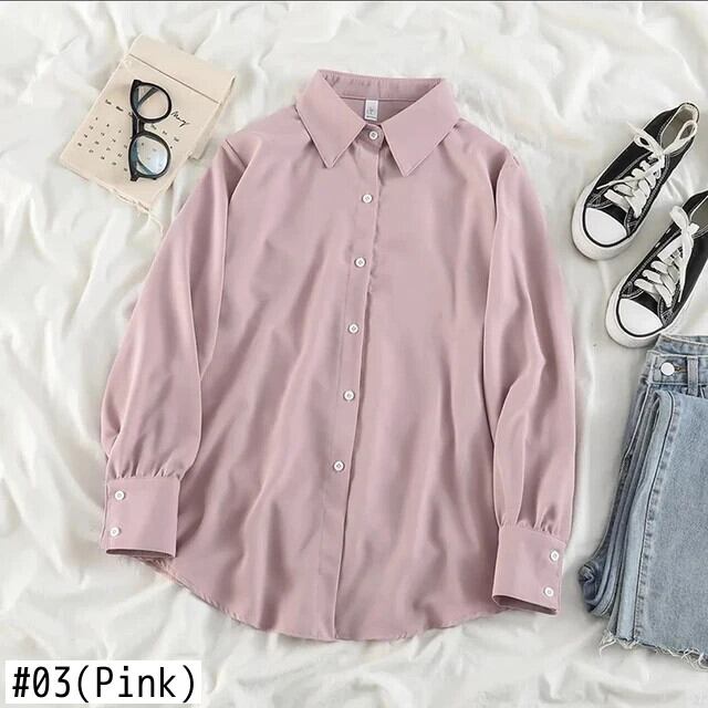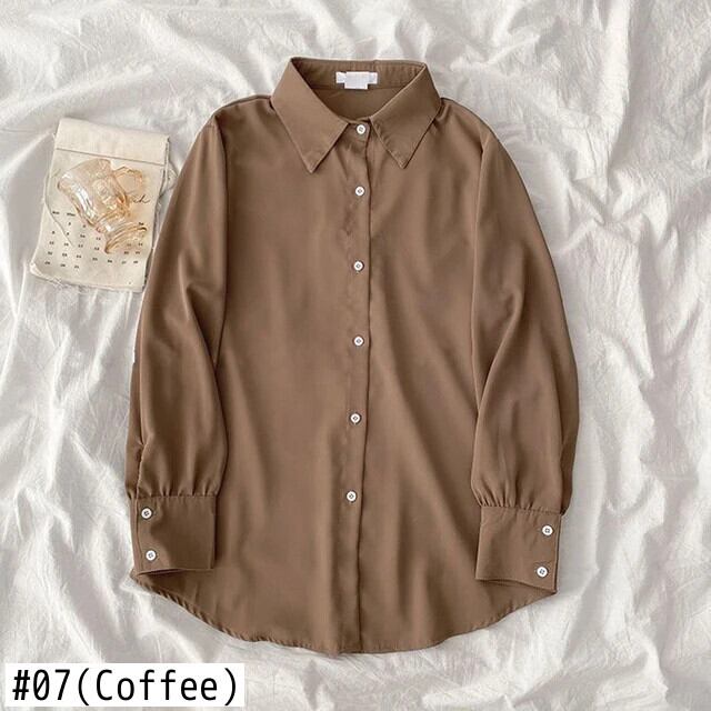 送料無料 Gidyq レディース シフォン シャツ ルーズ 長袖 トップス オフィス すべてマッチ ソリッド シャツ ロング ソリッドカラー 会社 学校 通勤や通学にも AE008077643484738046