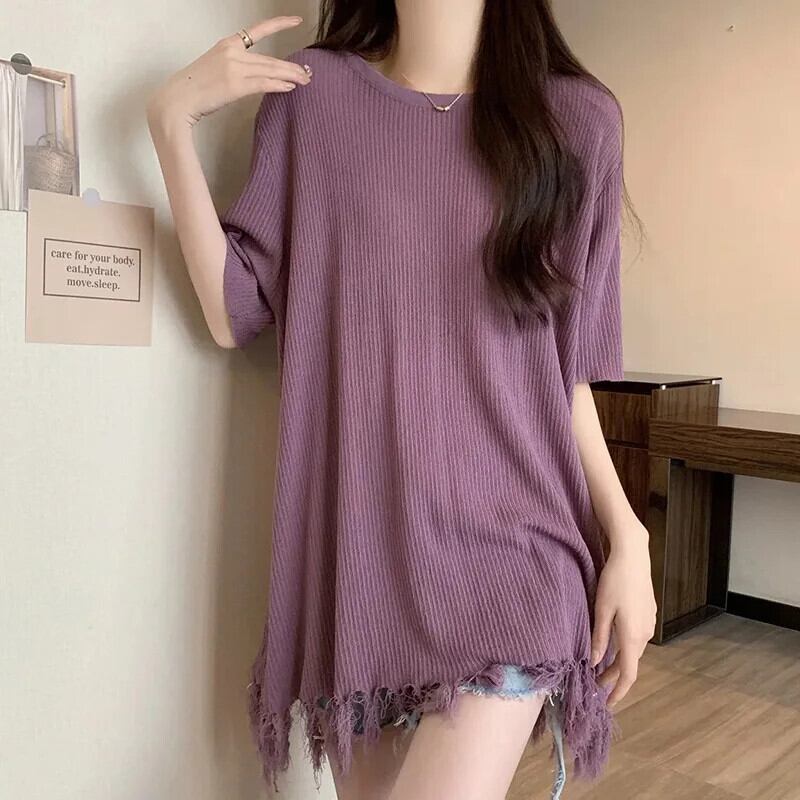 送料無料 Gidyq 夏の女性ニット Tシャツ Tel ルーズ長袖トップスオーバーサイズ 4Xl すべて一致 Y2K Tシャツ ロング サマー 夏物 AE008077670798146252