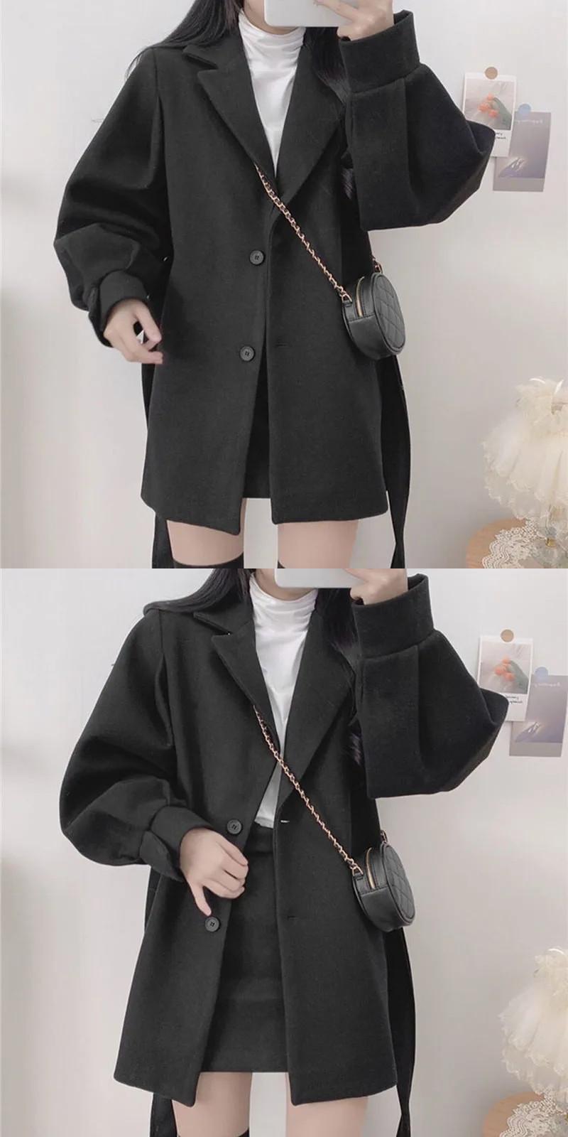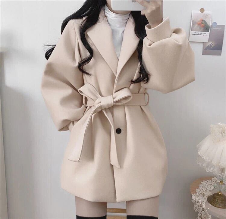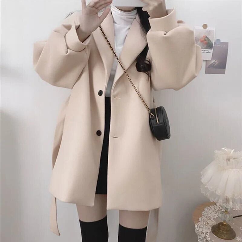 送料無料 Gidyq 女性フェイクウールコート秋ストリート包帯ルーズジャケットミディブレンドオーバーコート オータム 秋物 ファー AE00807769730881965