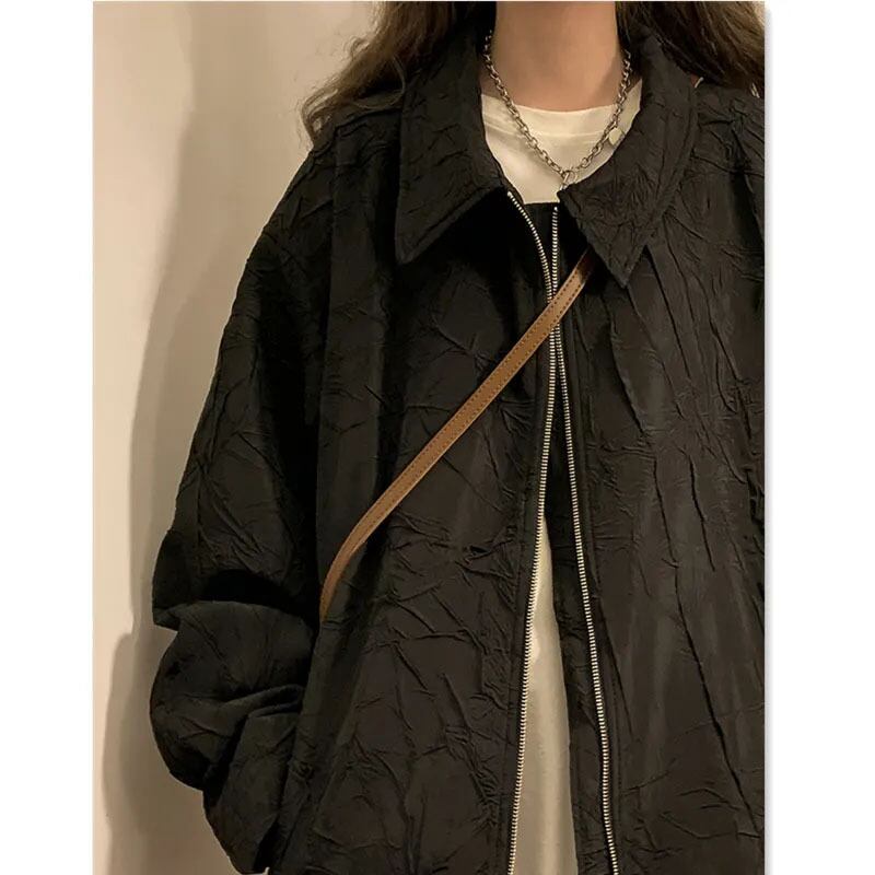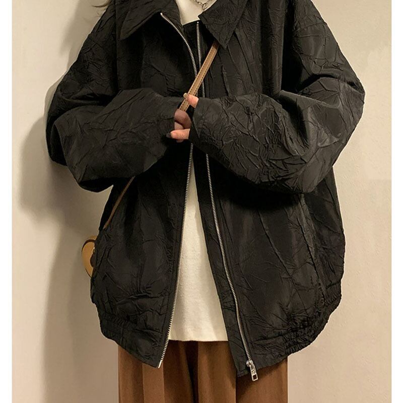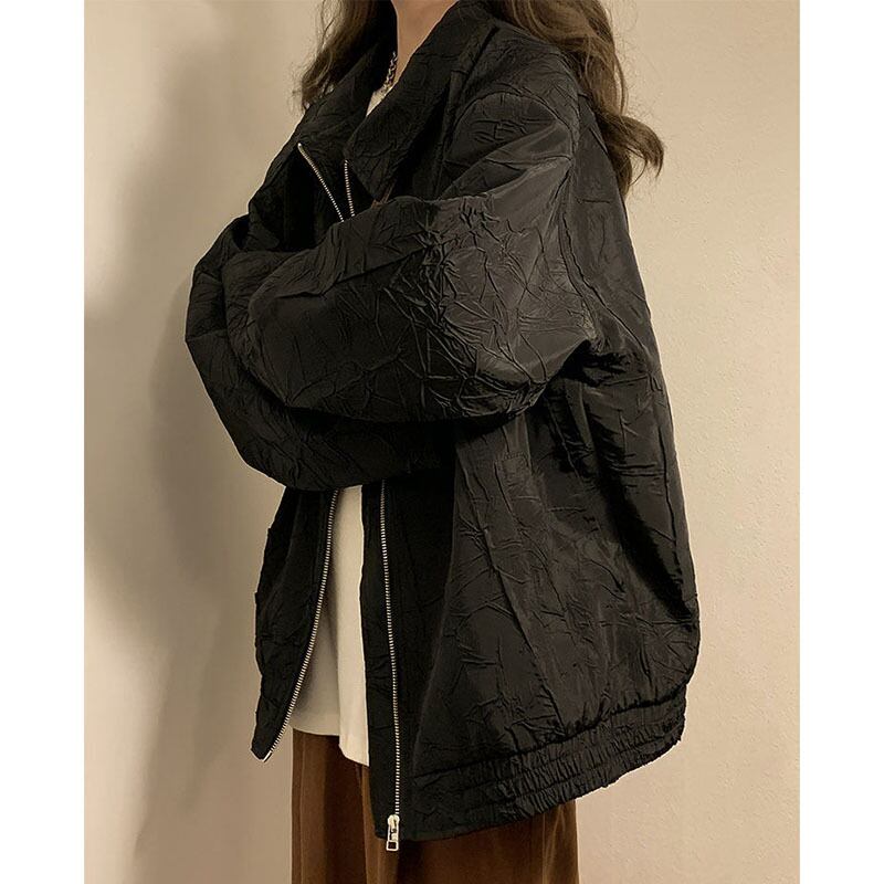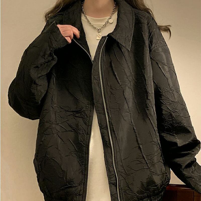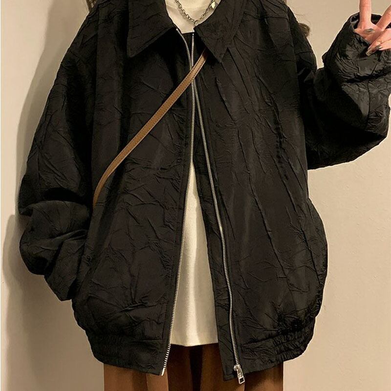 送料無料 Gidyq 秋の女性の野球ジャケット ストリート ルーズ アウター オール マッチ ブラック コート オータム 秋物 AE008077694002311221