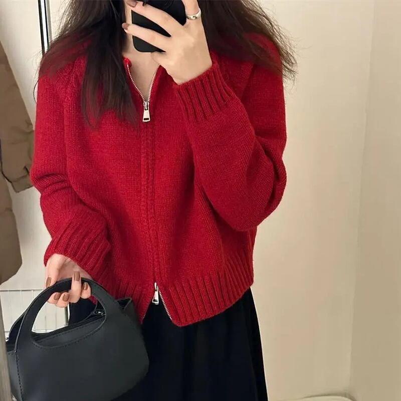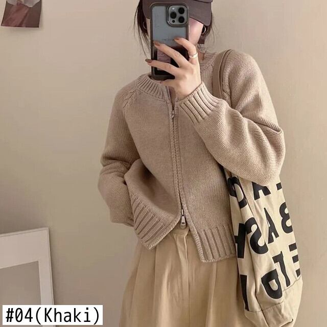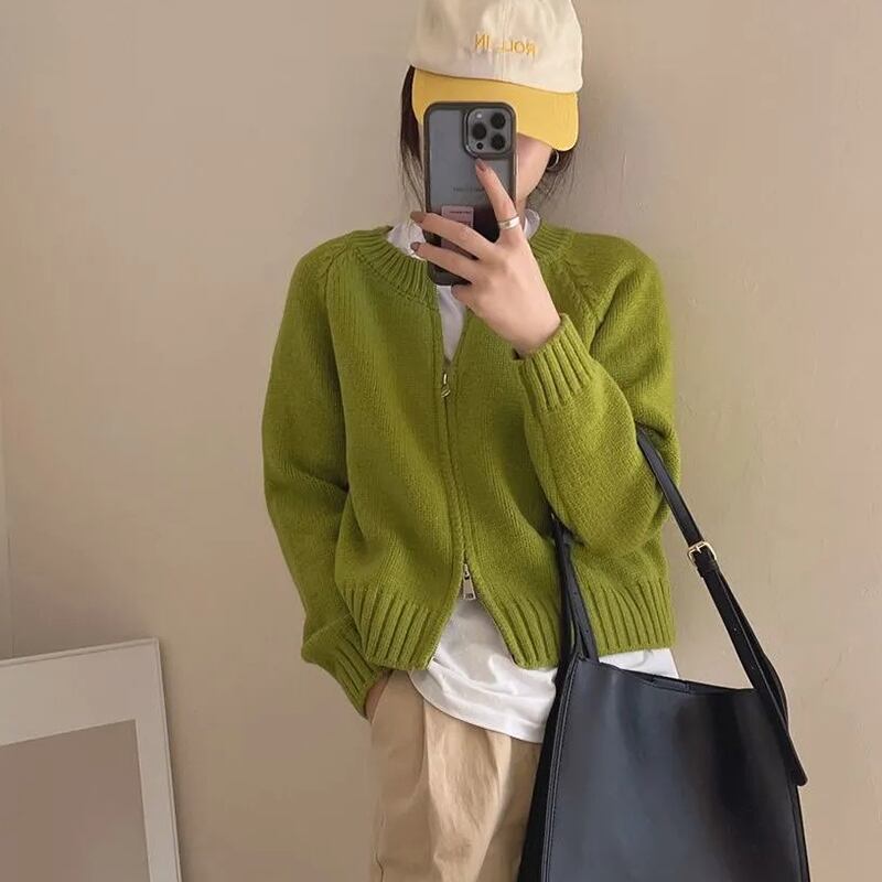 送料無料 Gidyq 女性カーディガンセーター秋ストリートルーズニットコートエドダブルジッパージャケット オータム 秋物 AE008077661805241800