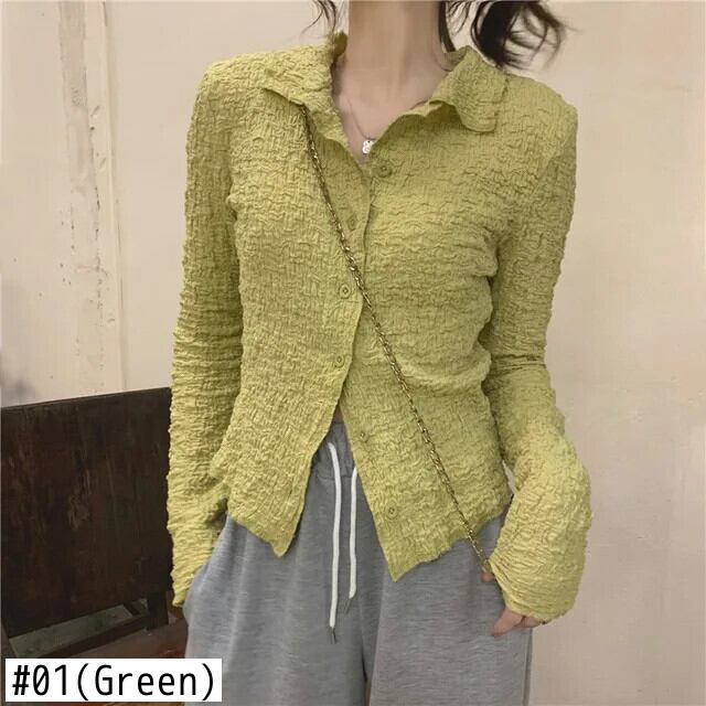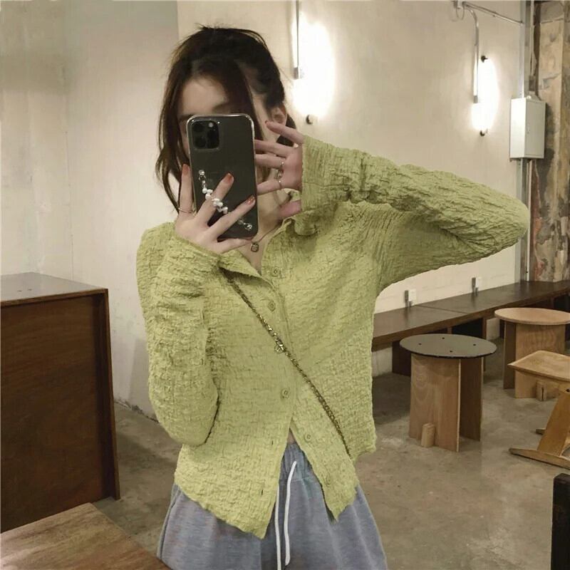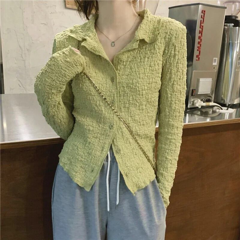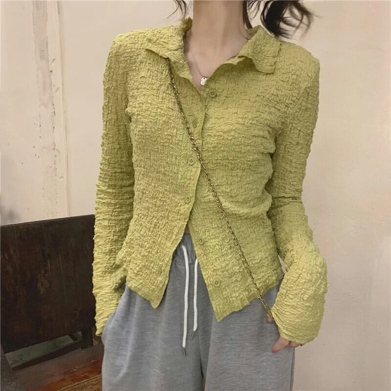 送料無料 Gidyq 女性シャツ折り目スリムフィット長袖トップス Y2K すべてマッチストリートウェアクロップドシャツ ロング AE008077683418848774