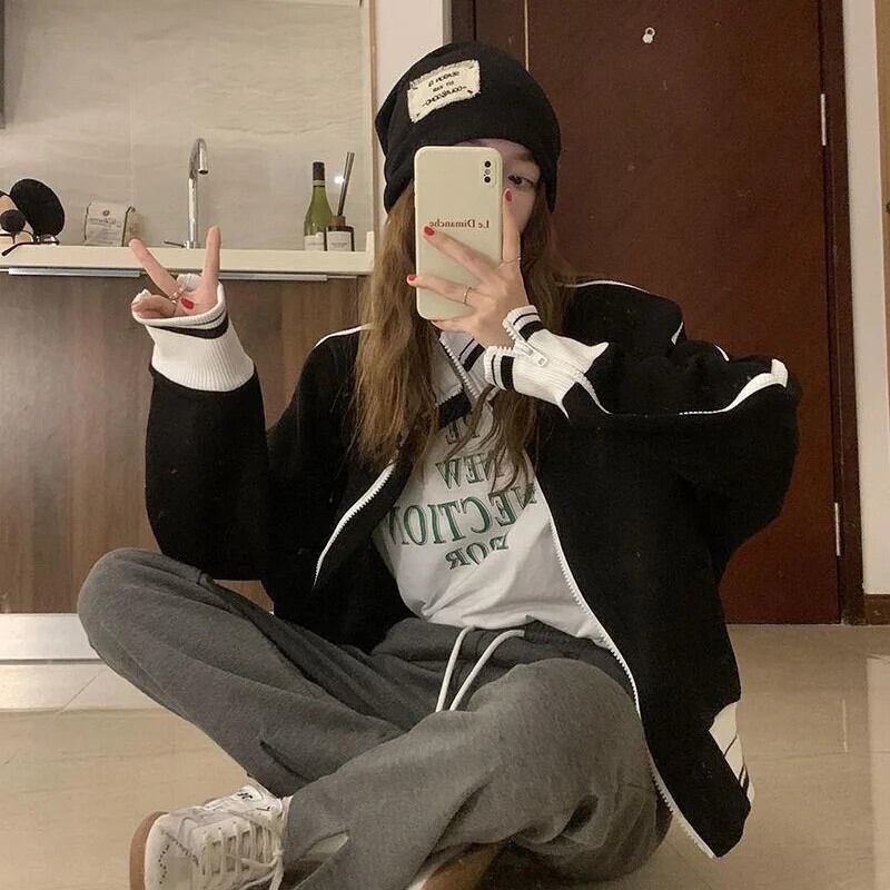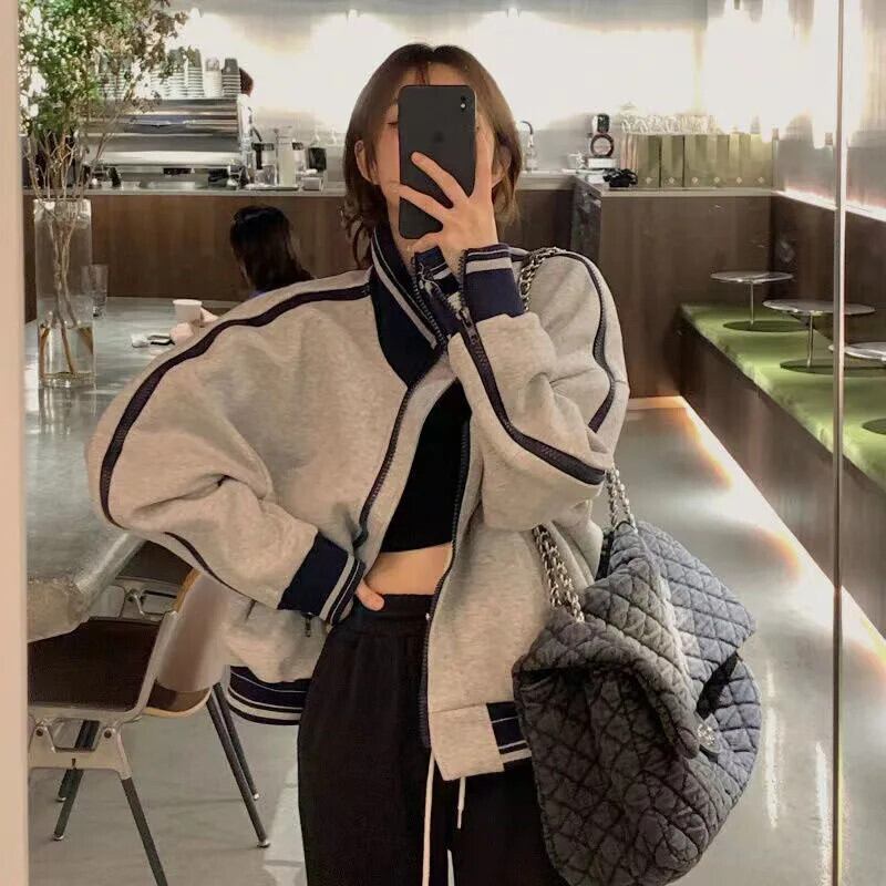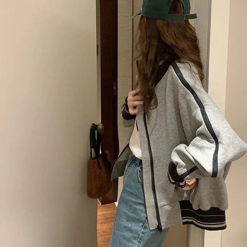 送料無料 Gidyq レディース ベースボール ジャケット 秋 ed ジッパー ルーズ アウター ストリート パッチワーク オールマッチ コート オータム 秋物 AE008077618712404870