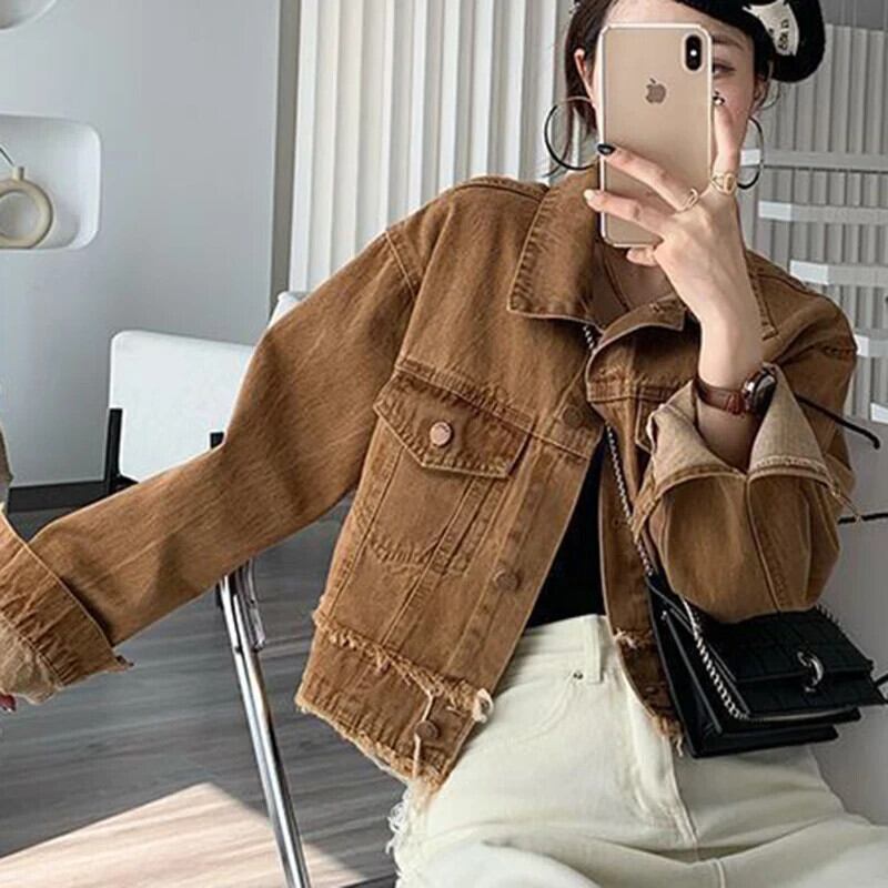 送料無料 Gidyq 女性 Tel デニムジャケット秋ストリートルーズクロップドコート原宿すべて一致生き抜く かわいい オータム 秋物 AE008077693913349899