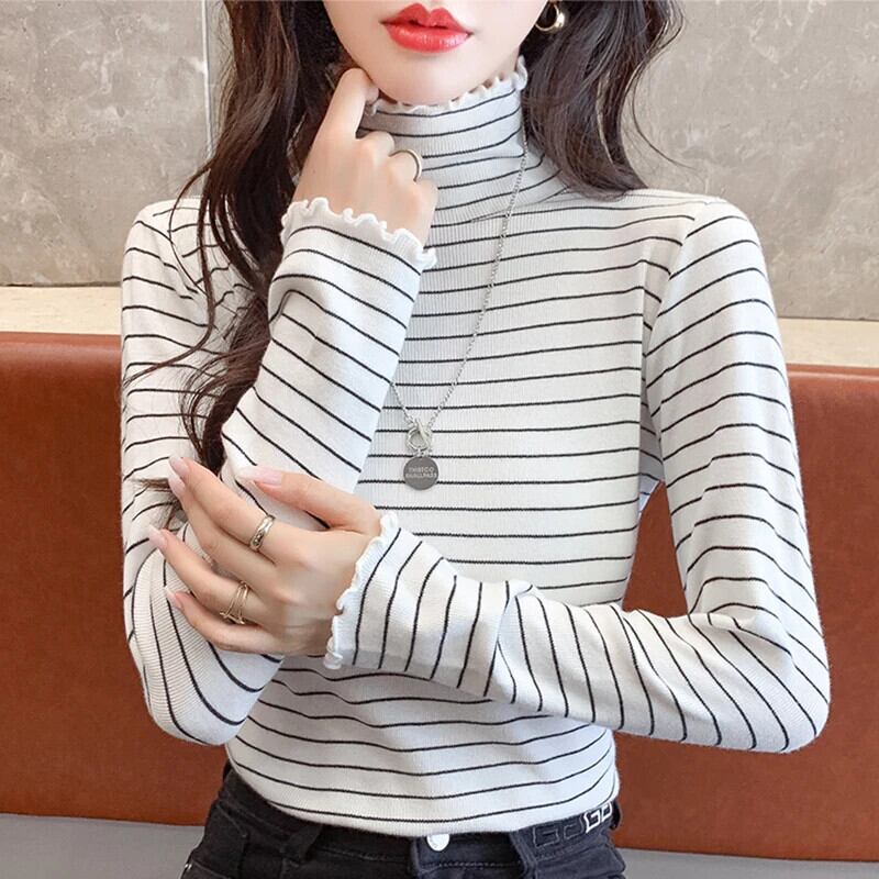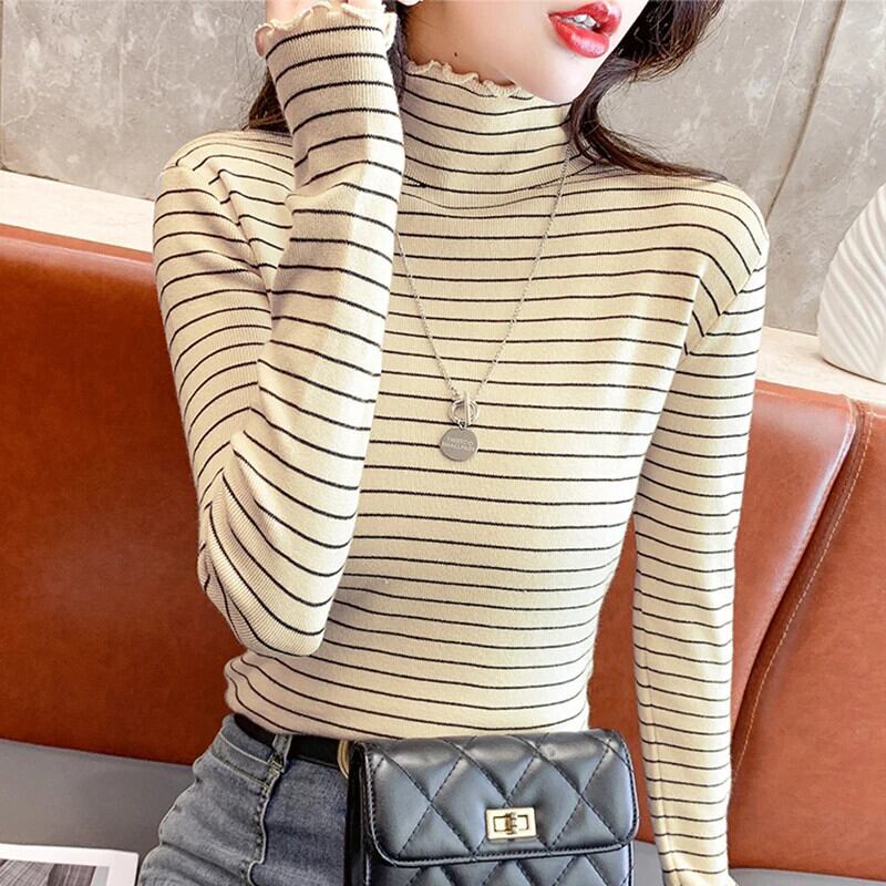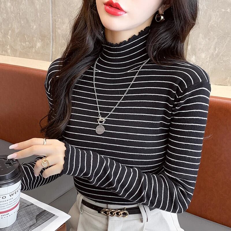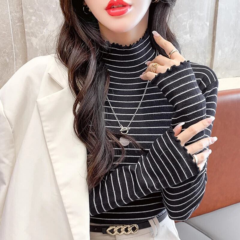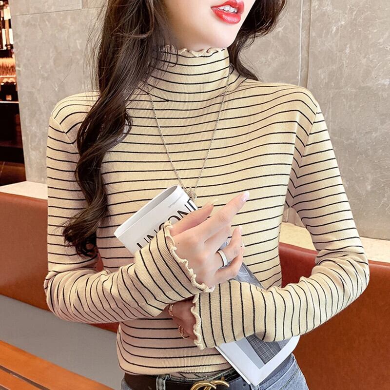 送料無料 Gidyq プルオーバー タートルネック ニット シャツ レディース 秋 スリム ストライプ トップス すべて一致ボトリング シャツ オータム 秋物 AE008077631155105517