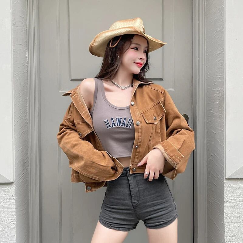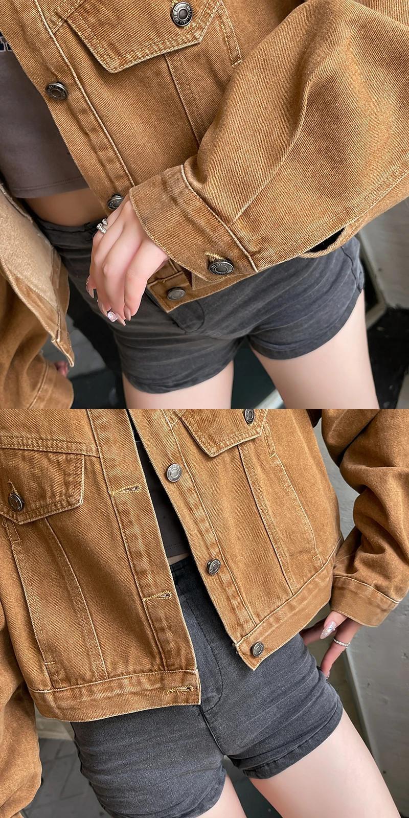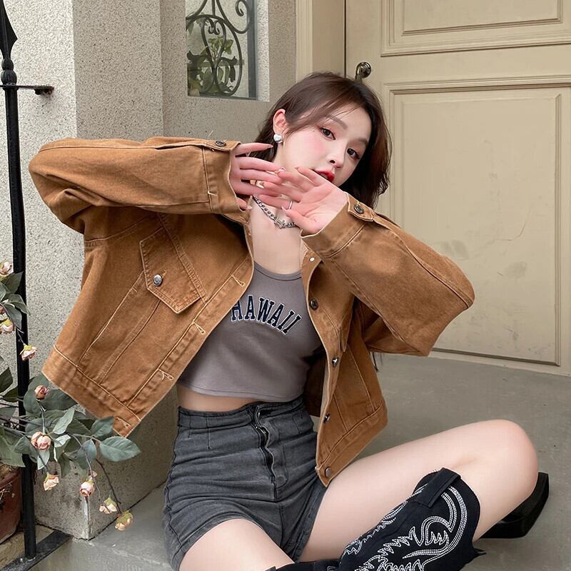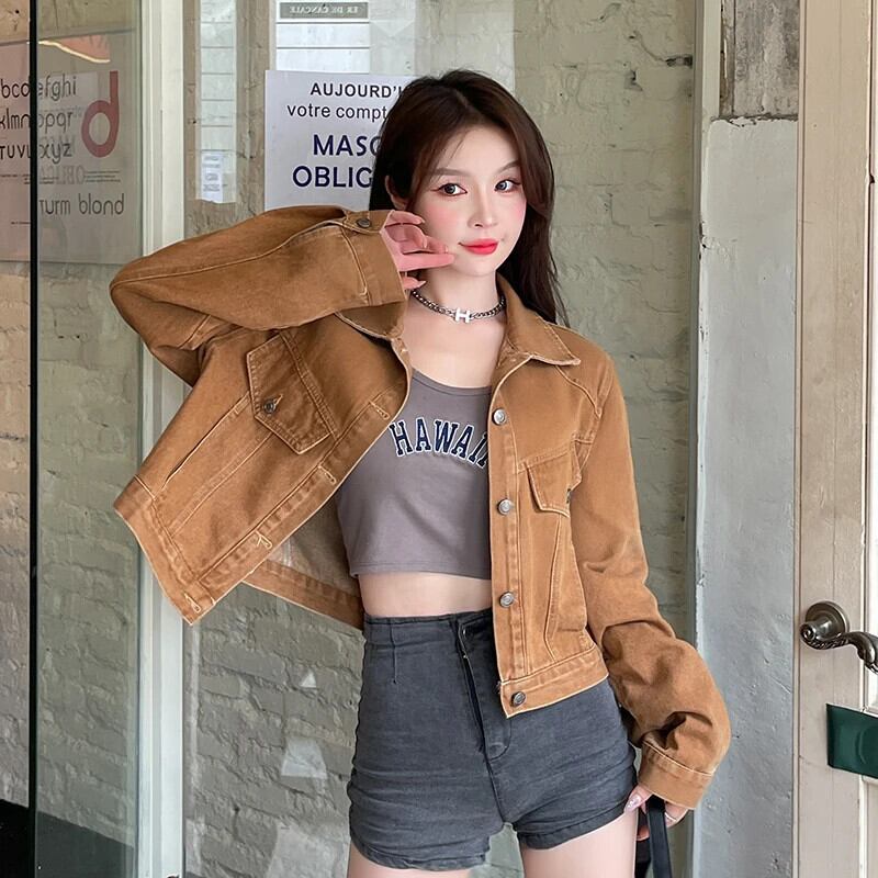 送料無料 Gidyq ストリート女性デニムジャケットスタイルクロップドルーズ長袖コート秋ボタン生き抜く新 ロング オータム 秋物 AE008077684673419856