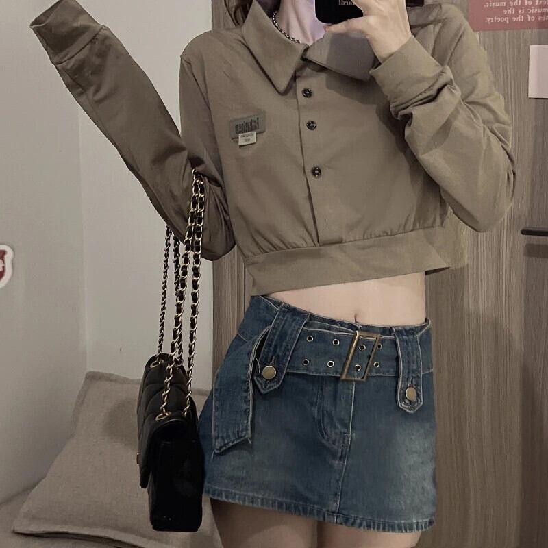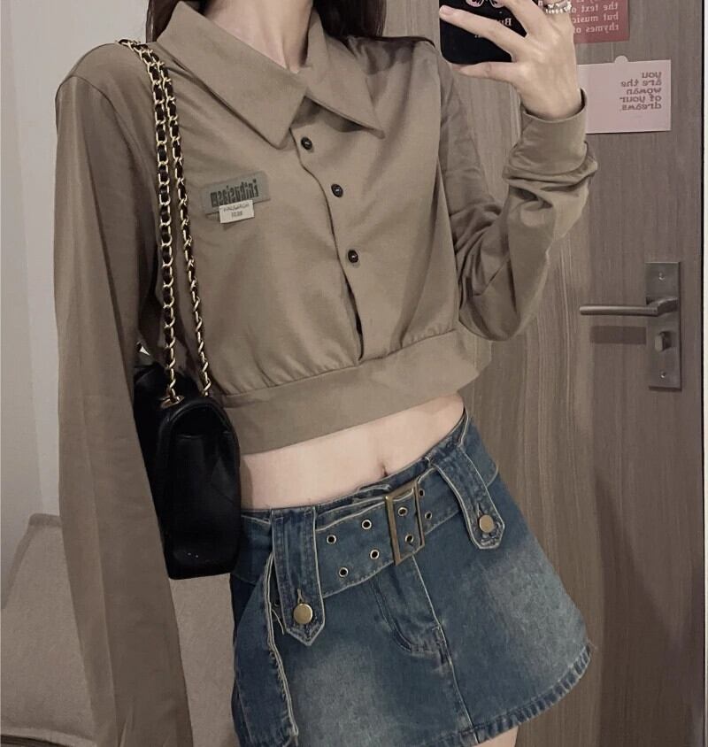 送料無料 Gidyq 女性 T シャツセクシーなクロップド長袖トップスすべて一致ストリートウェアボタン Tシャツ秋 ロング オータム 秋物 AE008077651661790228