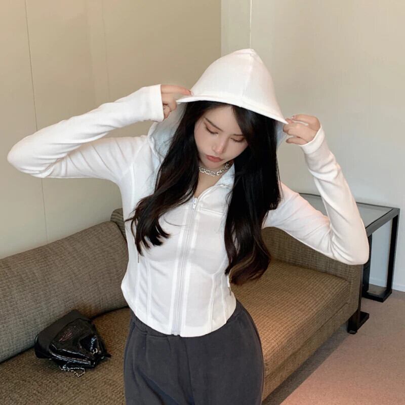 送料無料 Gidyq ストリート女性トレーナースリムフィットクロップド長袖トップス Y2K すべて一致ジッパーパーカー ロング AE008077692985378079
