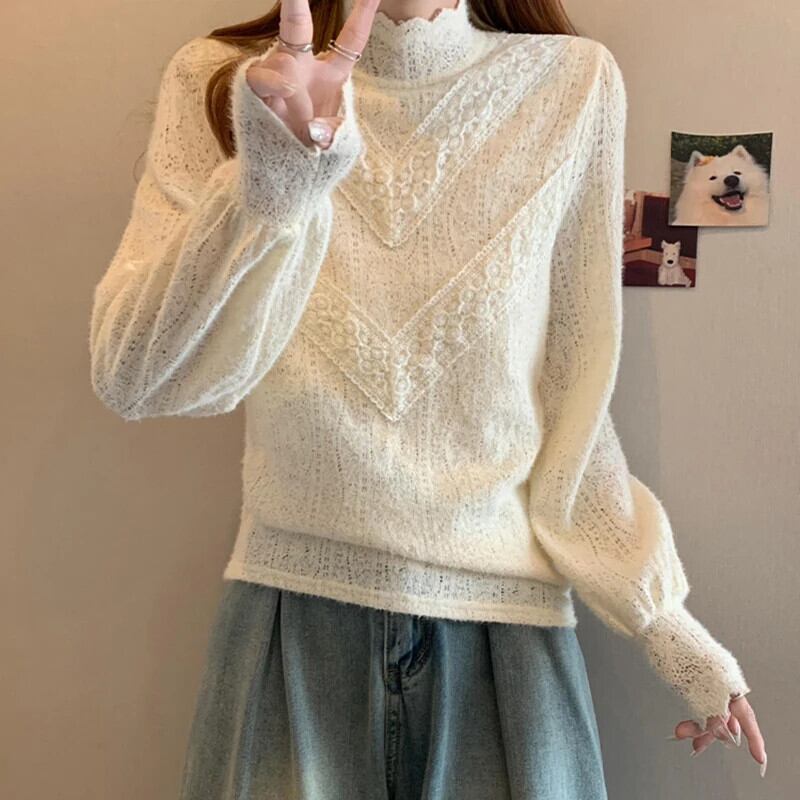 送料無料 Gidyq ストリートプルオーバーボトリングシャツ女性 ed レースシャツ原宿すべて一致長袖トップ ロング かわいい AE008077636686334283