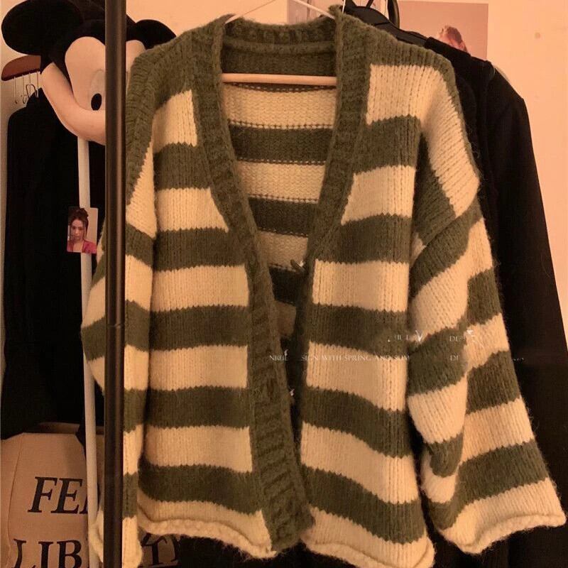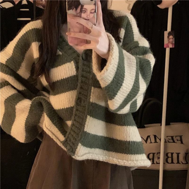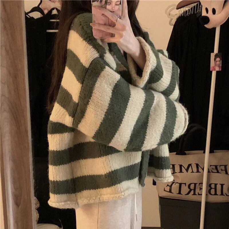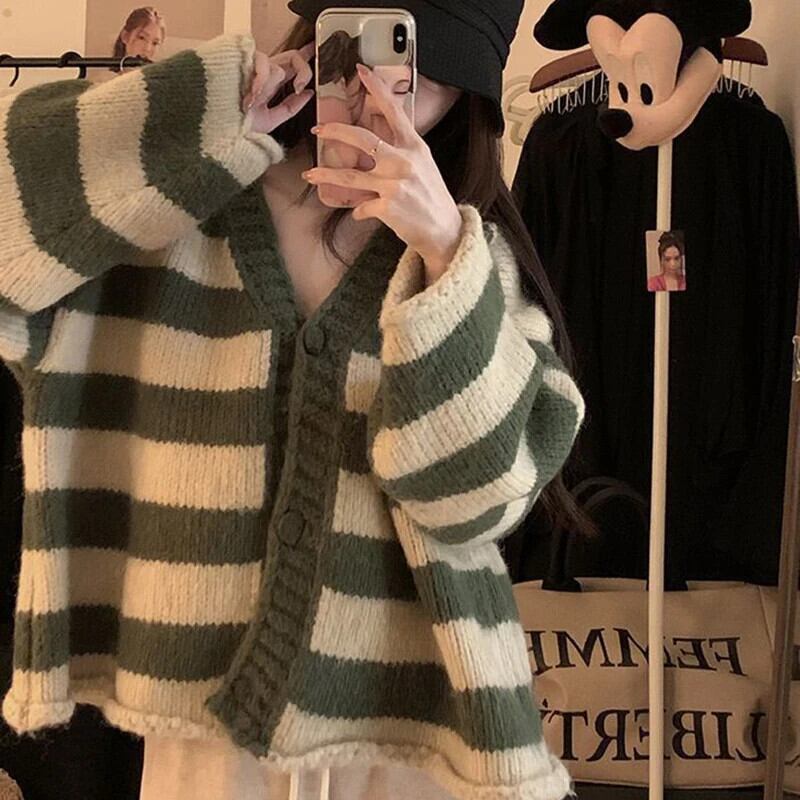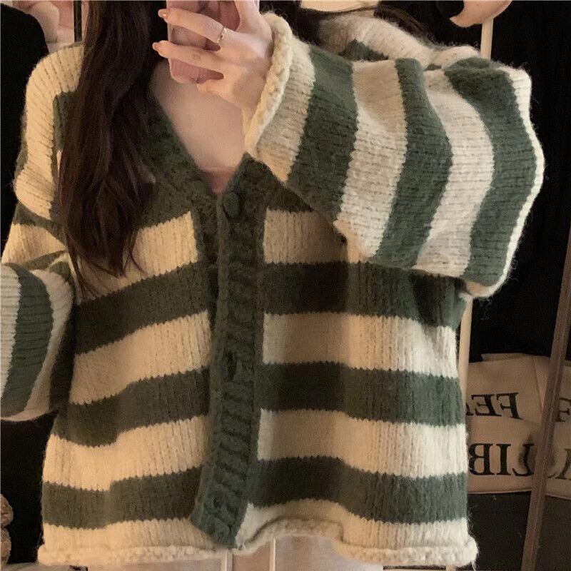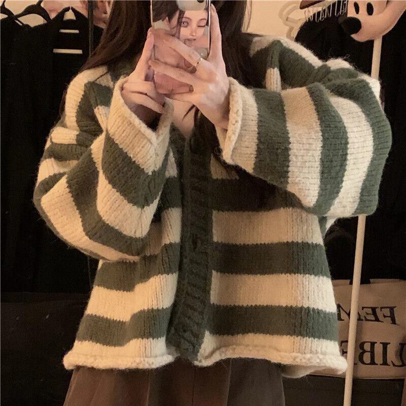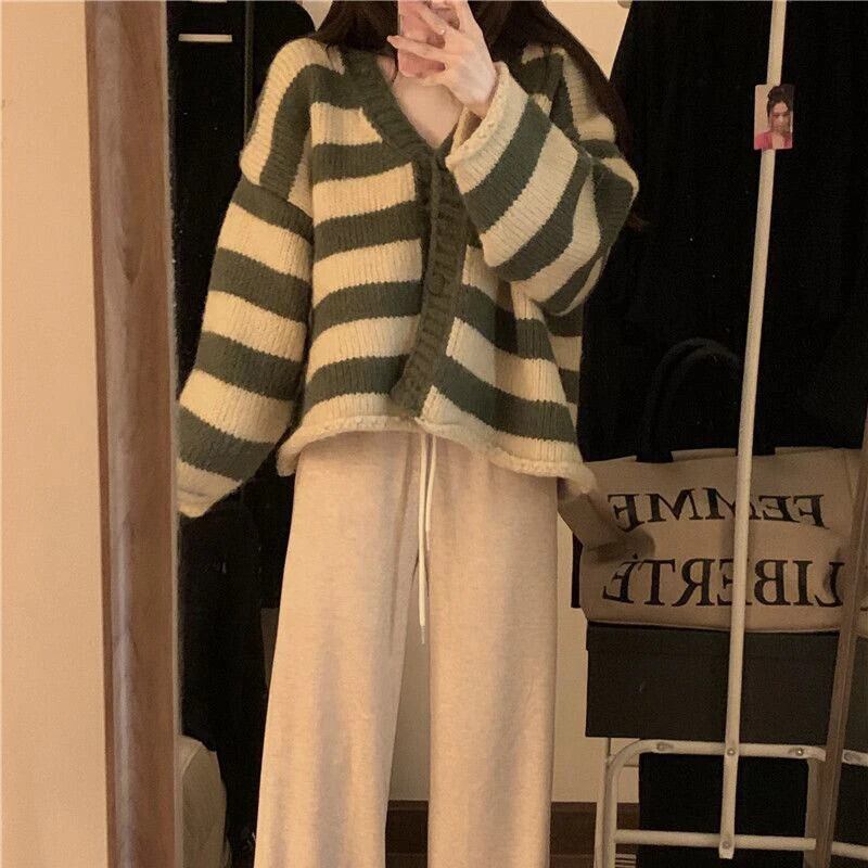 送料無料 Gidyq 女性カーディガンセーター秋ストライプルーズニットコートすべて一致ボタン長袖ジャケット ロング オータム 秋物 AE00807763650977950