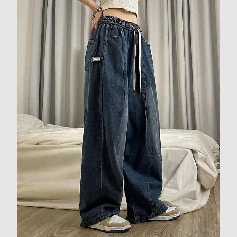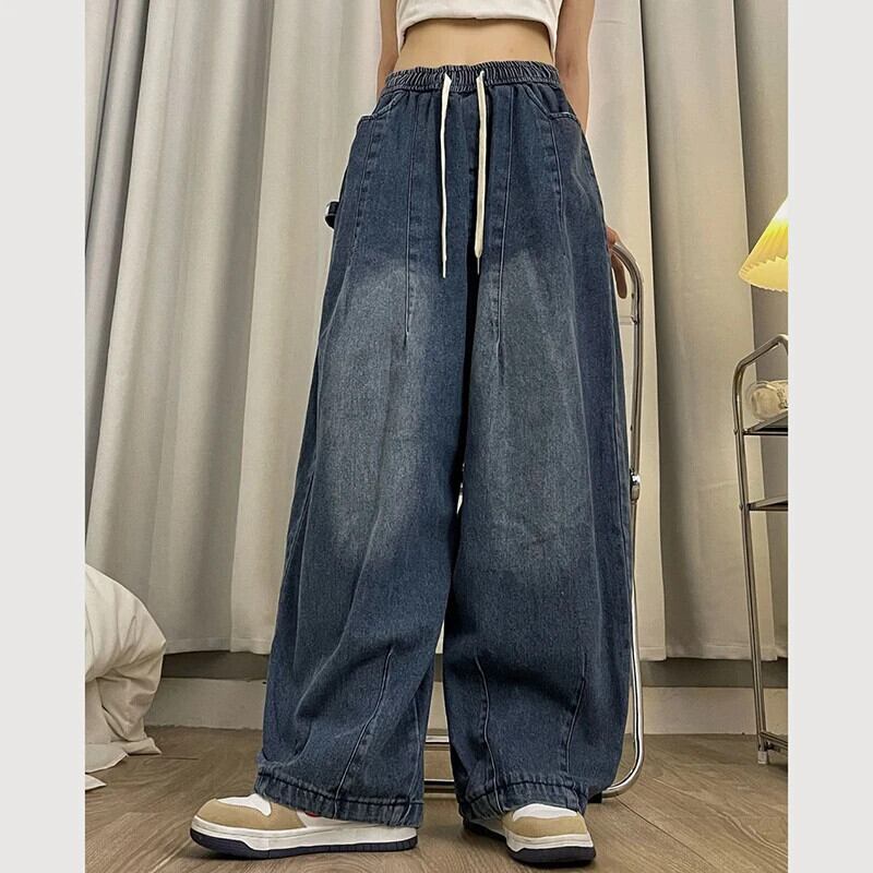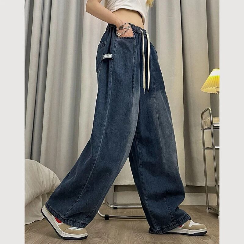 送料無料 Gidyq 女性カーゴジーンズ特大 3Xl ストリートルーズデニムワイドレッグパンツウエストすべて一致ズボン ワイドパンツ AE008077699795454182
