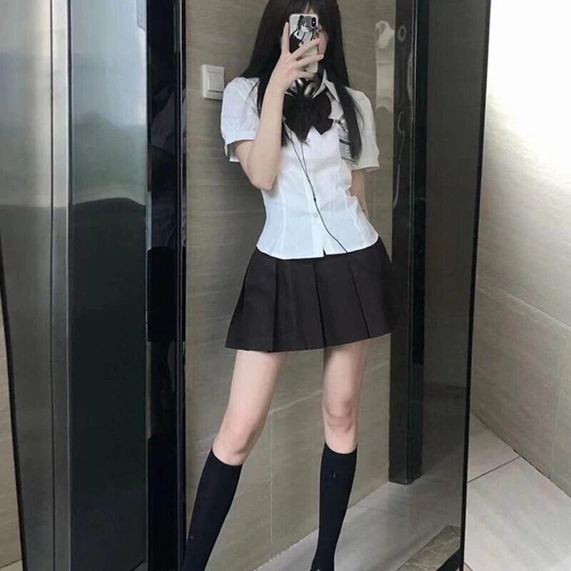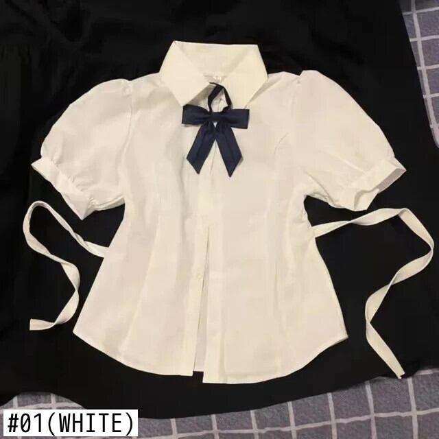 送料無料 Gidyq 甘い白シャツ女性プレッピースタイル JK 包帯半袖シャツ夏 Y2K スリムボウトップ ショート ホワイト リボン ハーフスリーブ 大人ガーリー スウィート キュート カジュアル サマー 夏物 AE008077682500824094