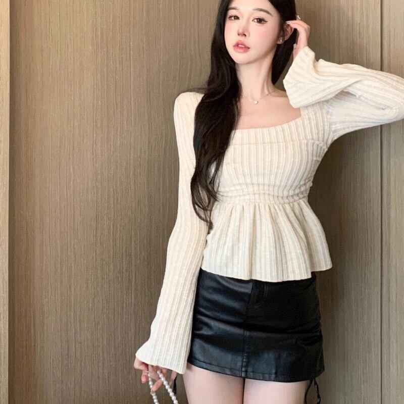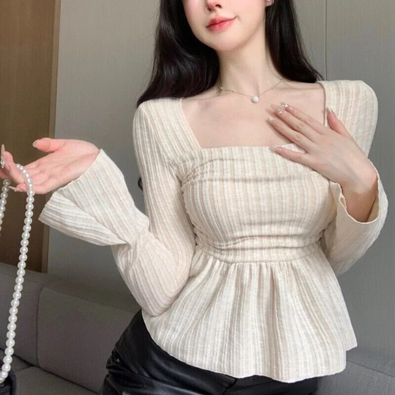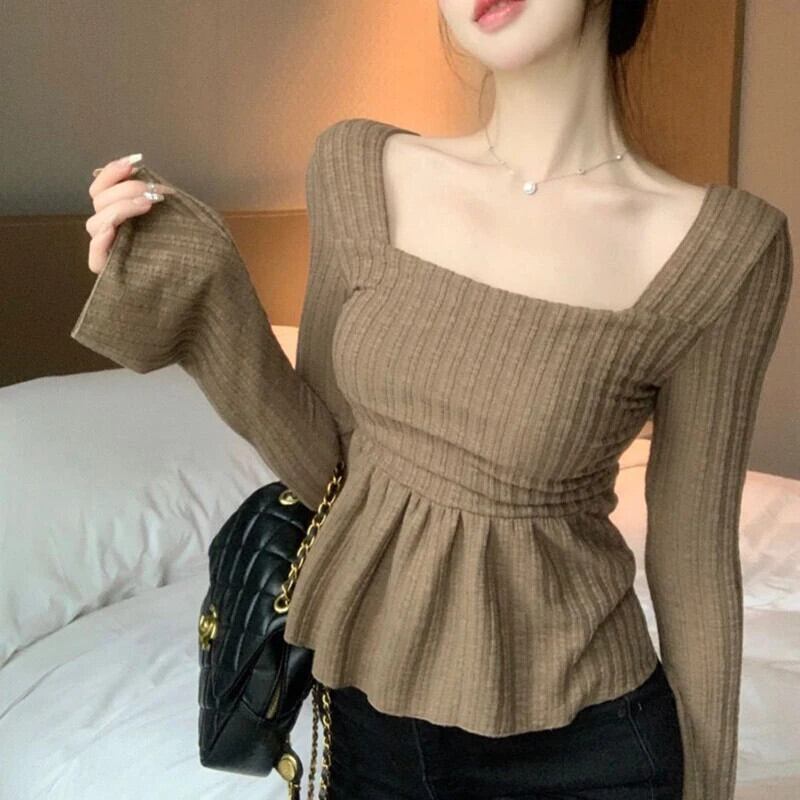 送料無料 Gidyq レディース クロップド Tシャツ スリム フレア スリーブ Tシャツ 春オールマッチ ソリッド ボトリング シャツ フレアスリーブ スプリング 春物 ソリッドカラー AE008077641220484985