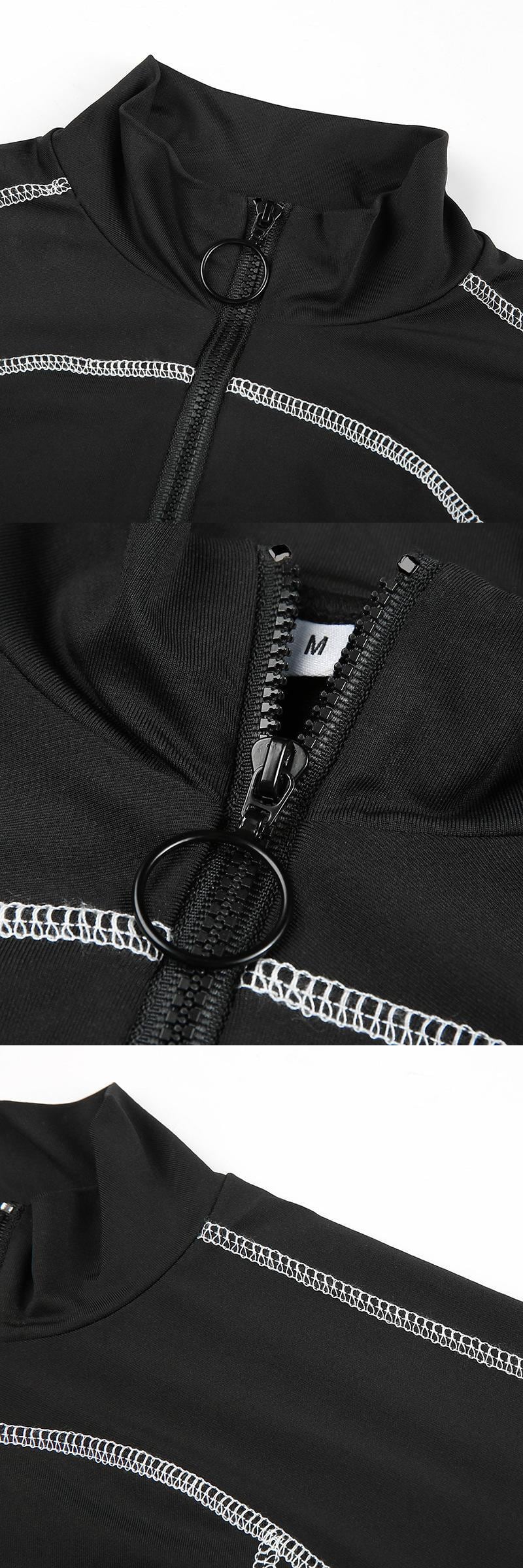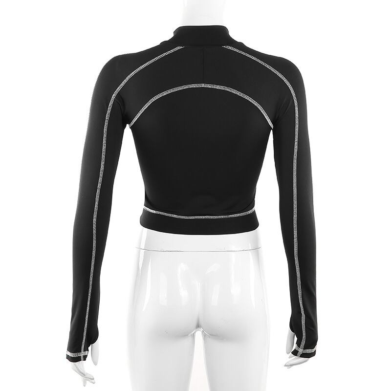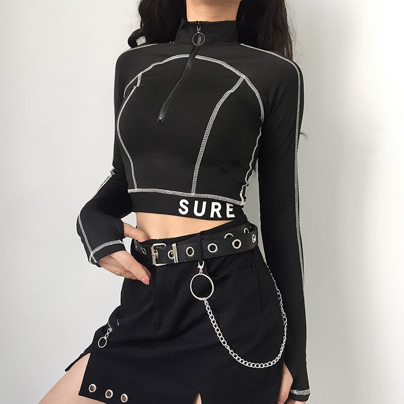 送料無料 Gidyq 女性のセクシーなクロップド Tシャツレタープリント長袖トップスストリートスリムフィットジッパー Tシャツ ロング AE008077677322191219