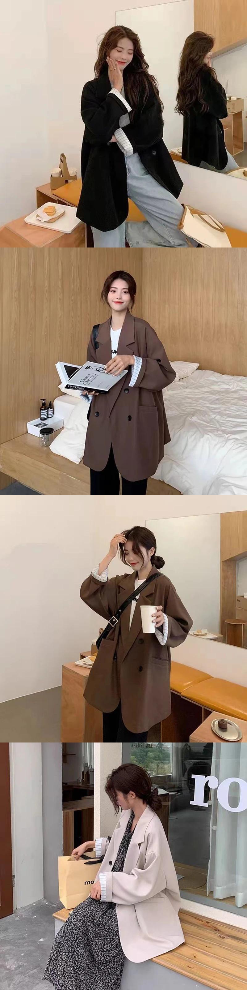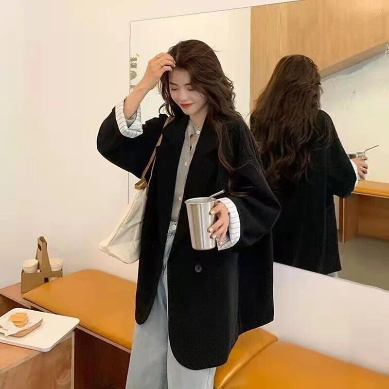 送料無料 Gidyq 女性スーツコートストリートパッチワークルーズ生き抜く原宿ビッグポケットすべて一致トップス秋 かわいい オータム 秋物 AE008077656541903948