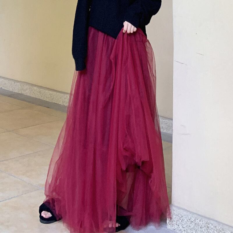 送料無料 Gidyq 女性チュールスカート夜会服ロングスカートウエストプリーツ A ラインスカート Aライン AE008077631215446306